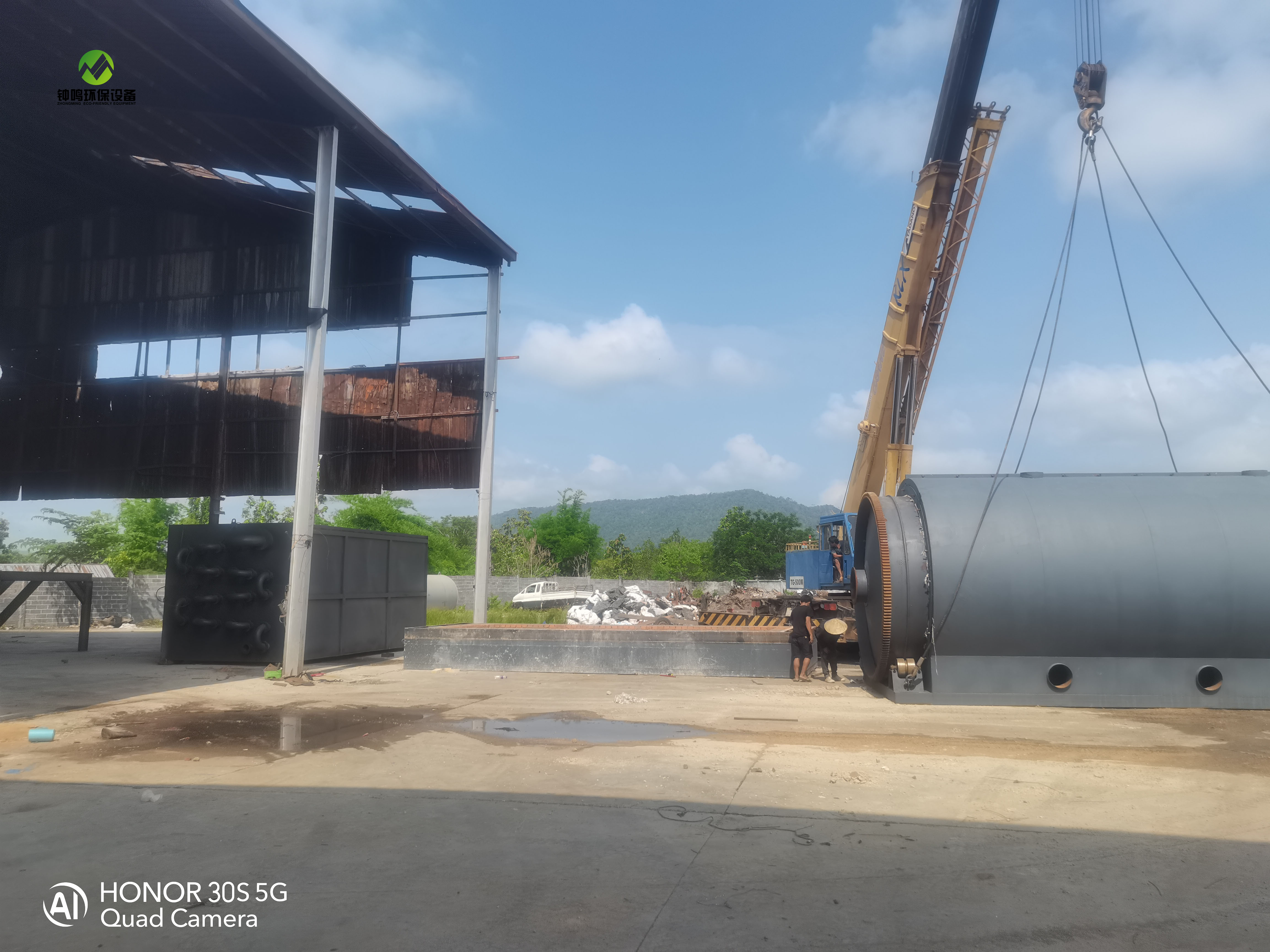 第 2 步: 加熱 ---- 可使用輪胎油、加熱燃料(如天然氣,煤炭,木頭)或不凝氣(其他幾臺(tái)設(shè)備裂解過(guò)程中產(chǎn)生的多余不凝氣)對(duì)裂解爐進(jìn)行均勻加熱,加熱約2小時(shí)左右,溫度逐步升至260度左右,裂解油氣通過(guò)裂解爐中心的出油氣口進(jìn)入冷卻系統(tǒng),液化成油進(jìn)入中間油罐。